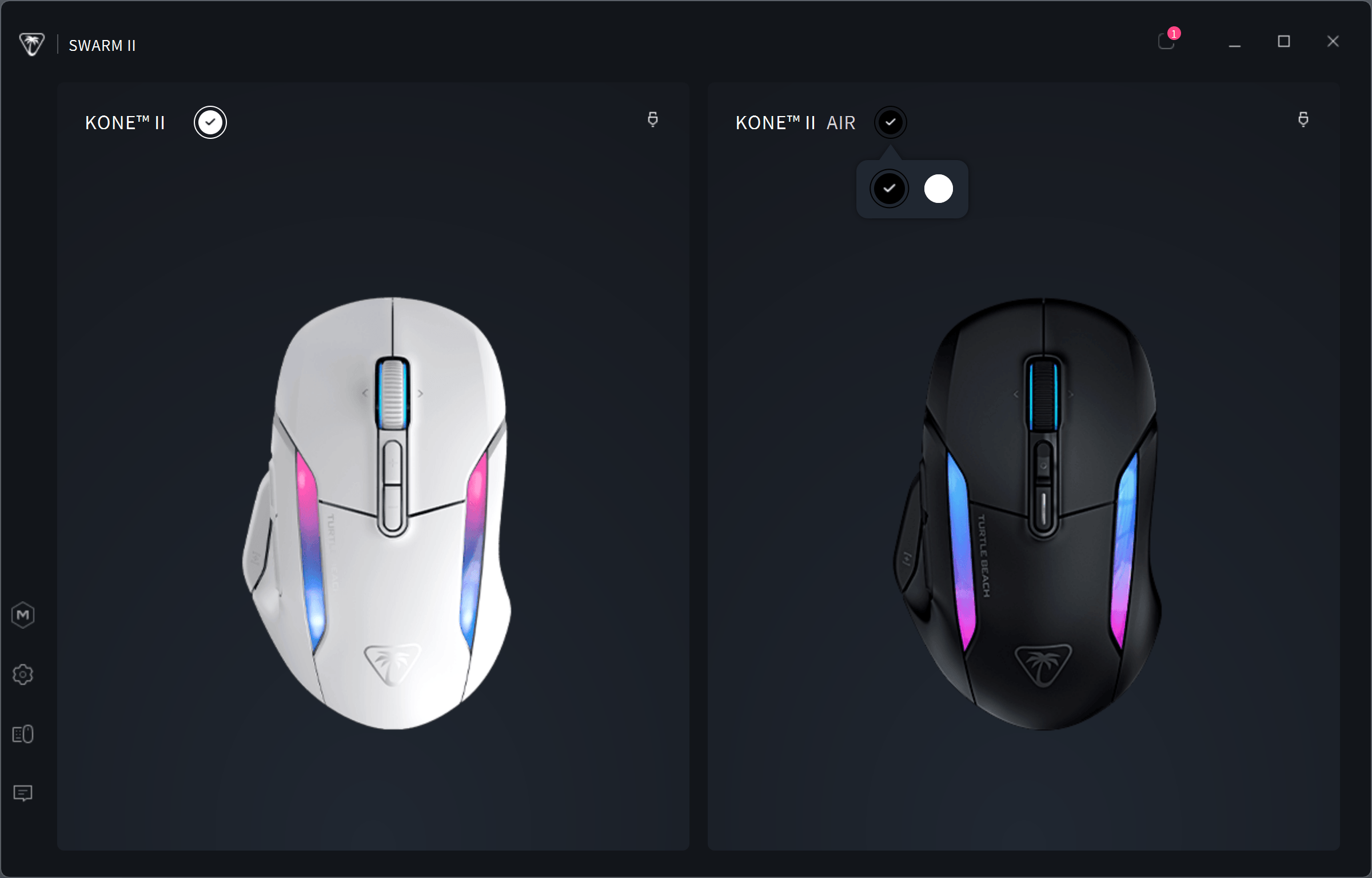 「Swarm II」はTurtle Beachのゲーミングデバイスを一括管理できるアプリで、さまざまな設定を変更・保存することができる。