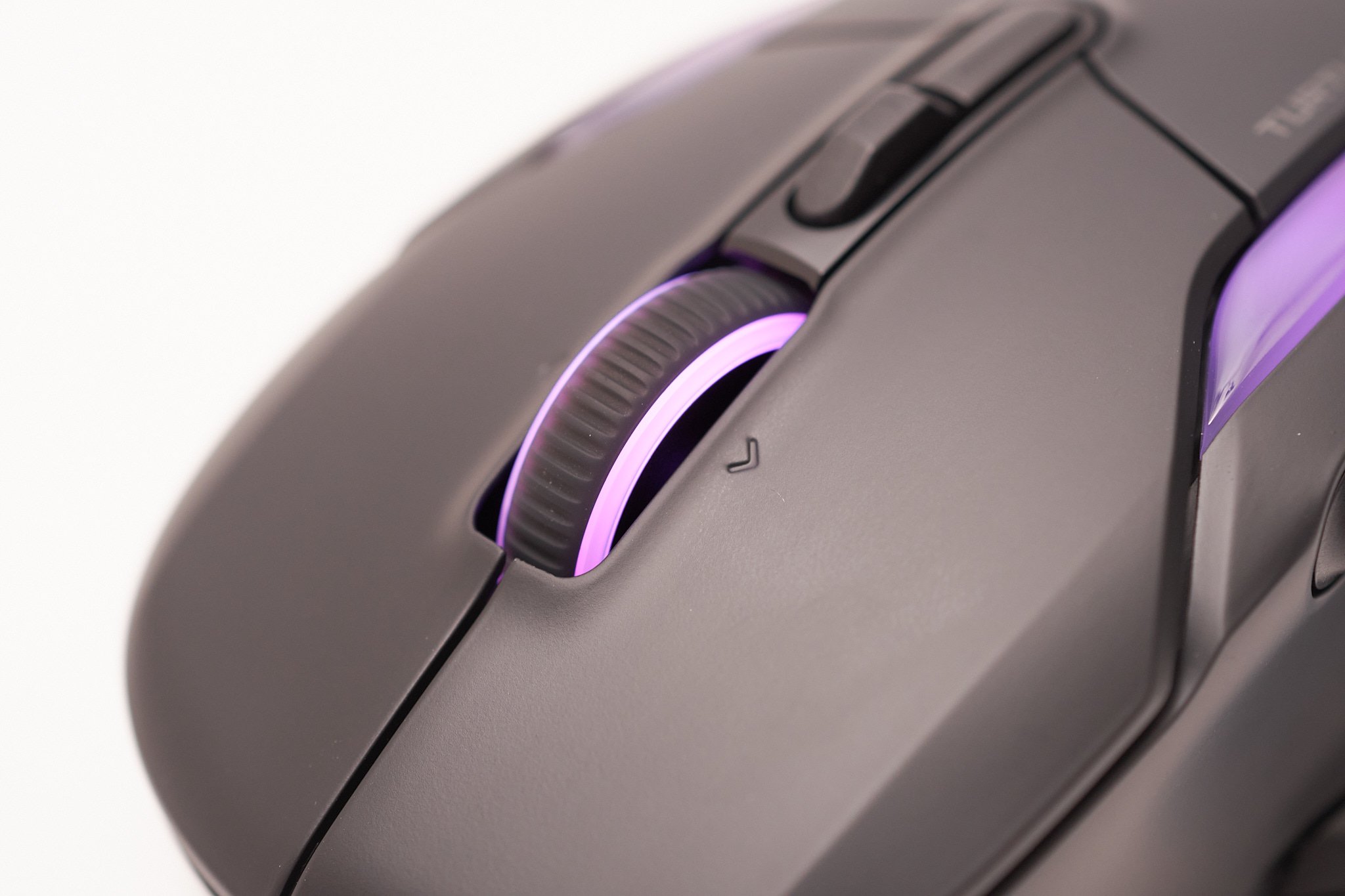▲「Kone II」のホイール下部には単純に物理ボタンがふたつついている。こちらは後述する「Swarm II」でお好みの操作を割り当てることが可能だ