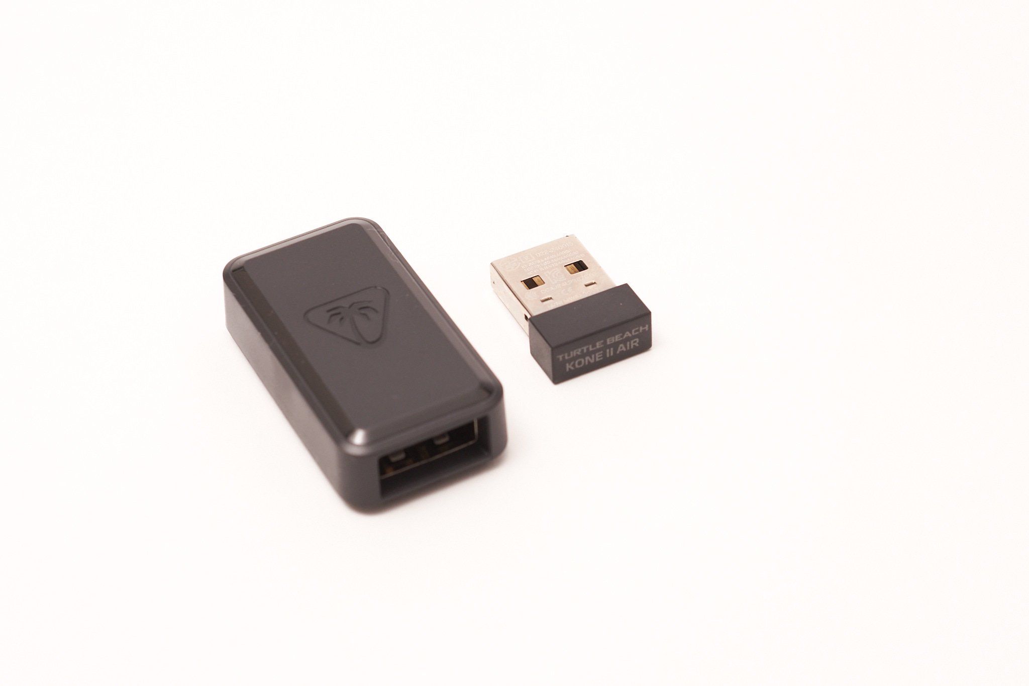 ▲2.4GHz接続する際に使用するトランスミッター(写真右)。写真左のアダプターを使えば、付属のケーブルを使ってマウス本体の近くにトランスミッターを設置できる。より無線接続を安定させたいユーザーにおすすめだ
