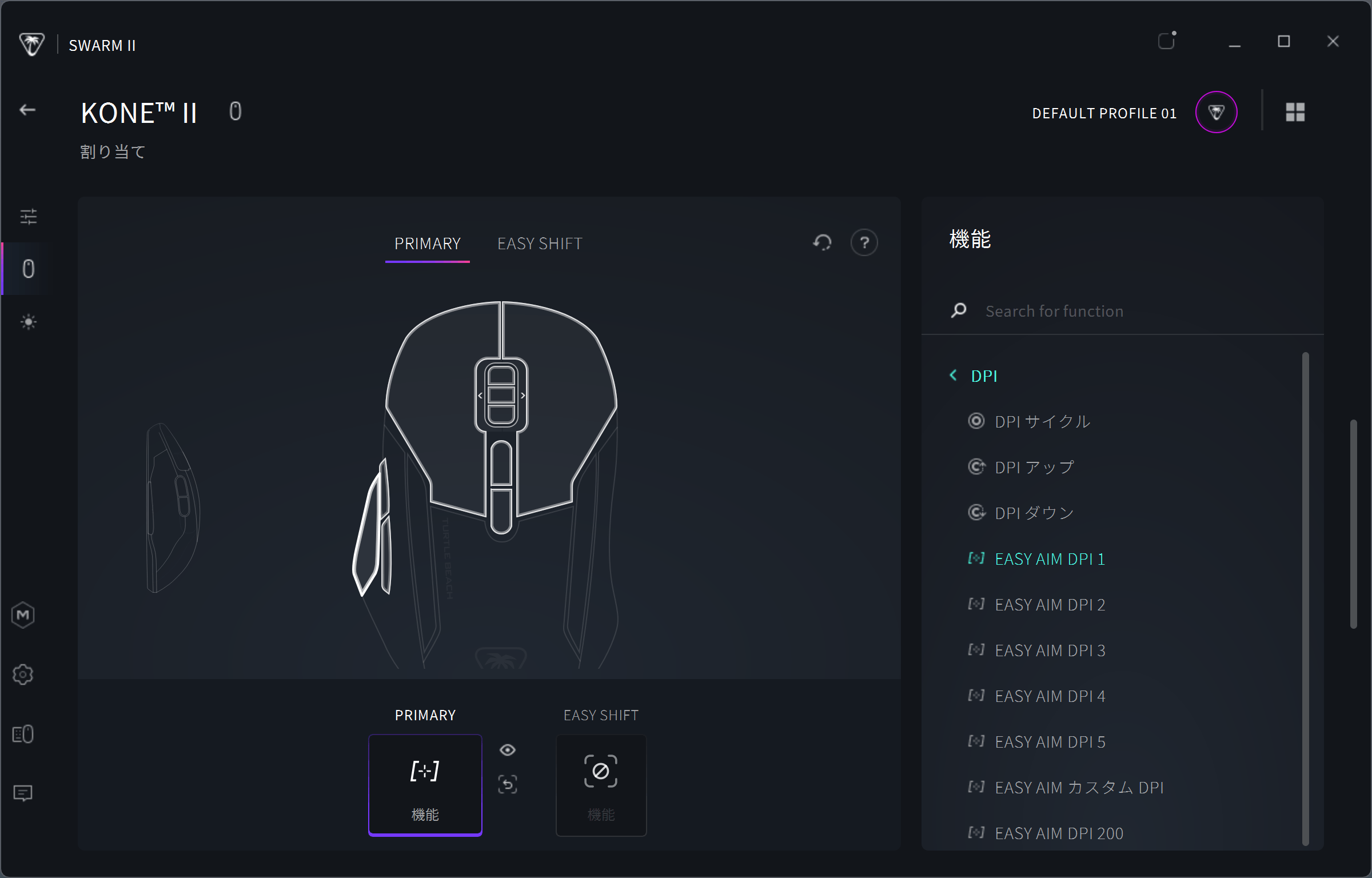 今回は「Swarm II」オリジナルの機能として、「Easy Aim DPI」と「Easy Shift」のふたつの機能に焦点を当てて解説していこう。