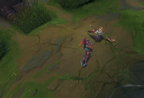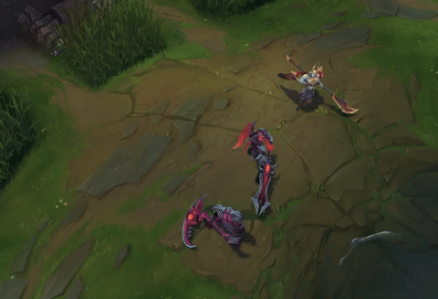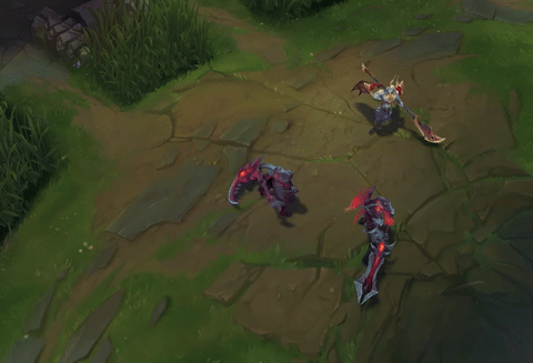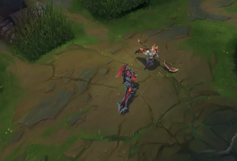 敵チャンピオンに対する攻撃およびスキルで「不退転」のスタックを獲得し攻撃力が増加。最大になると復活できるというとんでもパッシブ。回復スキルや移動スキルで継続戦闘でき、事前のプレー動画を見るとパッシブでの復活時には半分以上回復しているようなので、1対1の戦闘はかなり強そうだ。