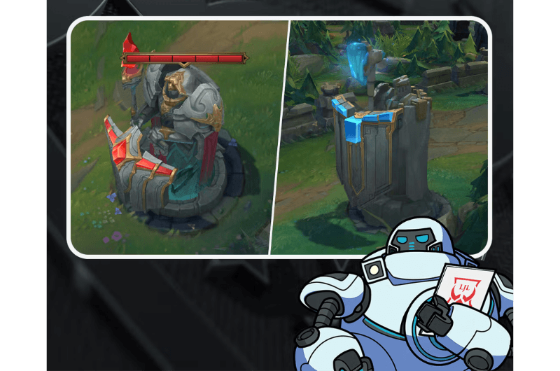 来シーズンからは外側のみだった「タワープレート」は内側/インヒビタータワーのどちらにも実装されるようになり、14分の時間制限も撤廃されます。つまり、ネクサスタワーを除いたすべてのタワーに恒久的に付与される仕様となったのです。「ドラゴン」などと比べると優先度の弱いオブジェクトとなってしまっていたので、こちらもプッシュとタワー破壊を主目的とするスプリットプッシュ戦術のバックアップにもなっています。