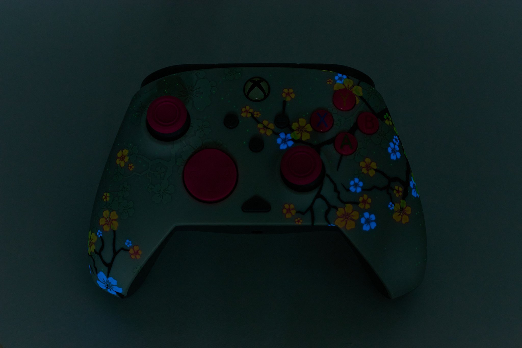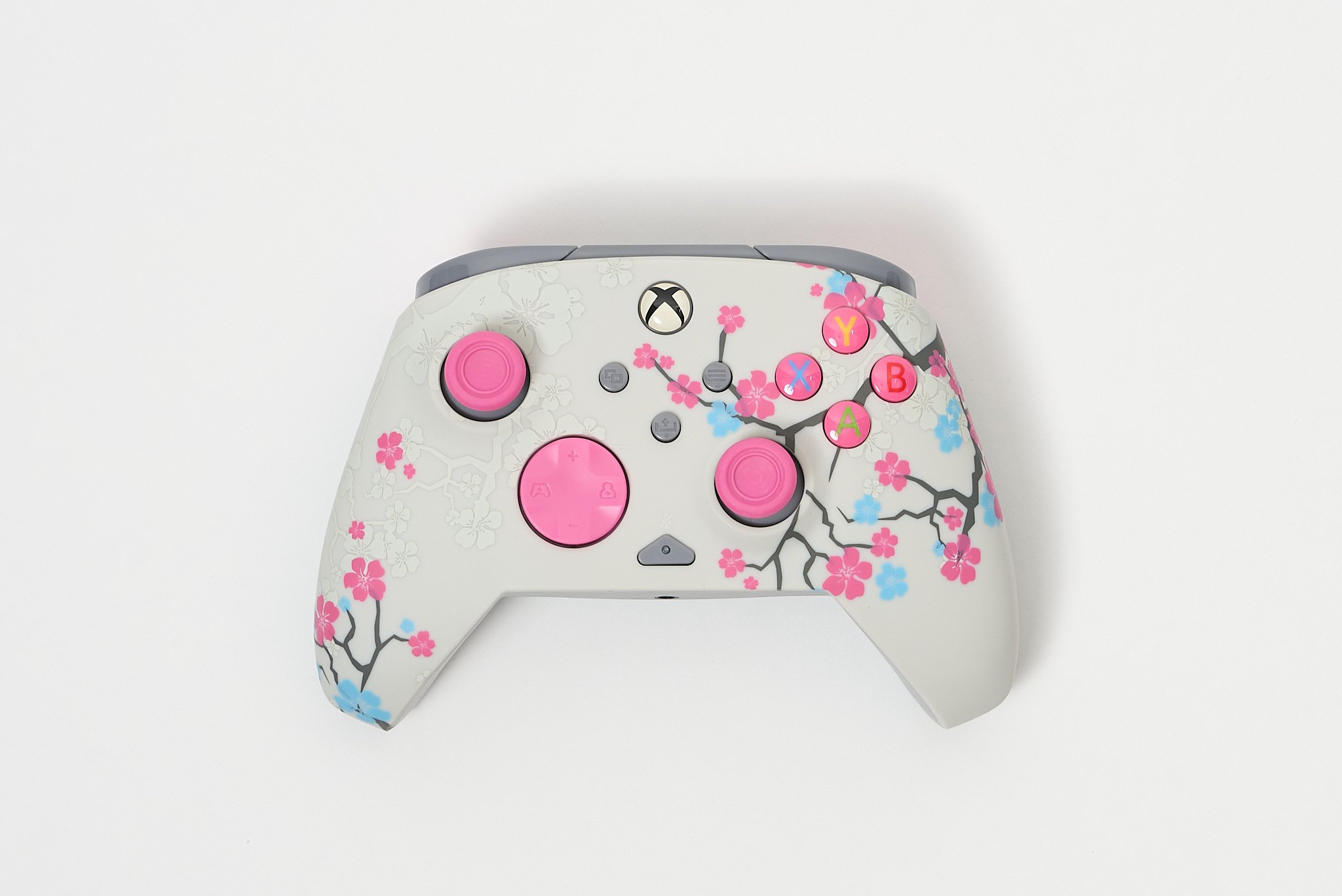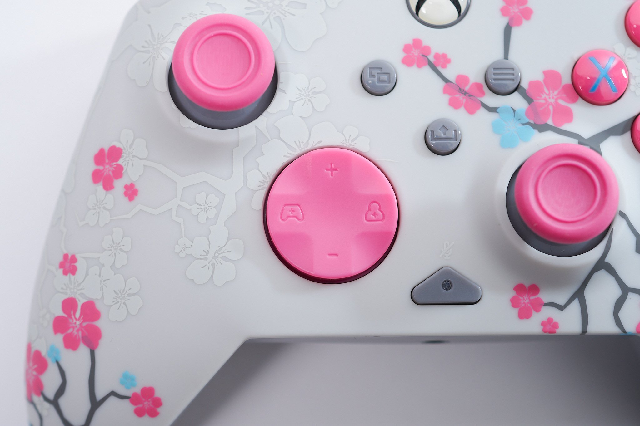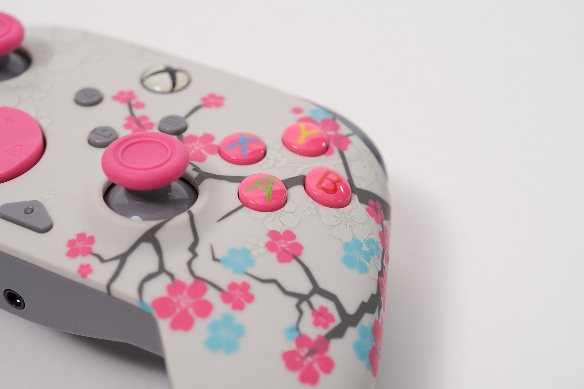 ▲ボタンやスティックは桜をモチーフにしたピンクで統一され、本体前面には桜のデザインが施されている