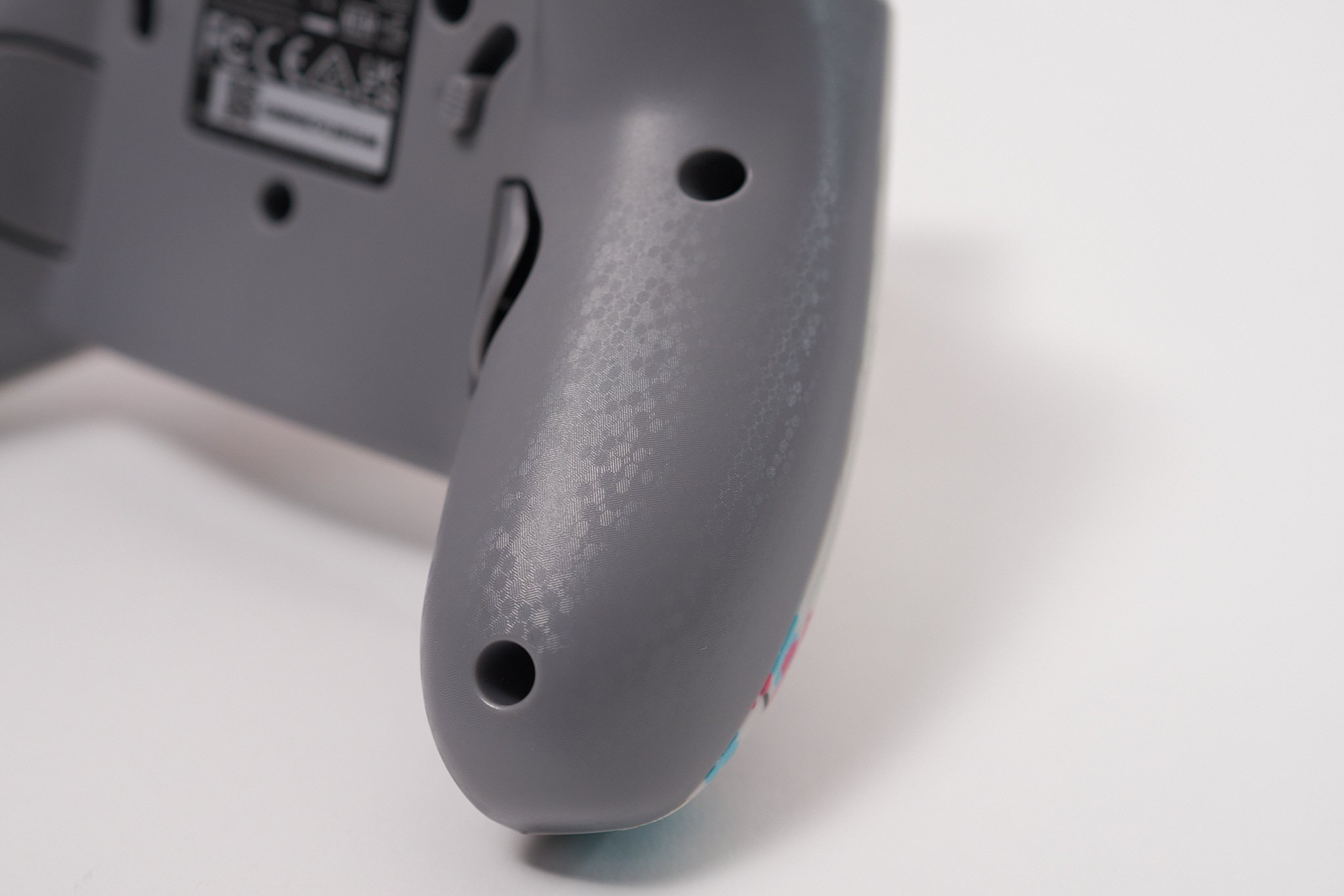 基本的な操作性は「Rematch Core」とほぼ同じ。ボタンは固めで方向キーが小さめというところ。グリップ部分にはレーザー刻印がされているため、「Rematch Core」に比べると握った感じの感触はいい。