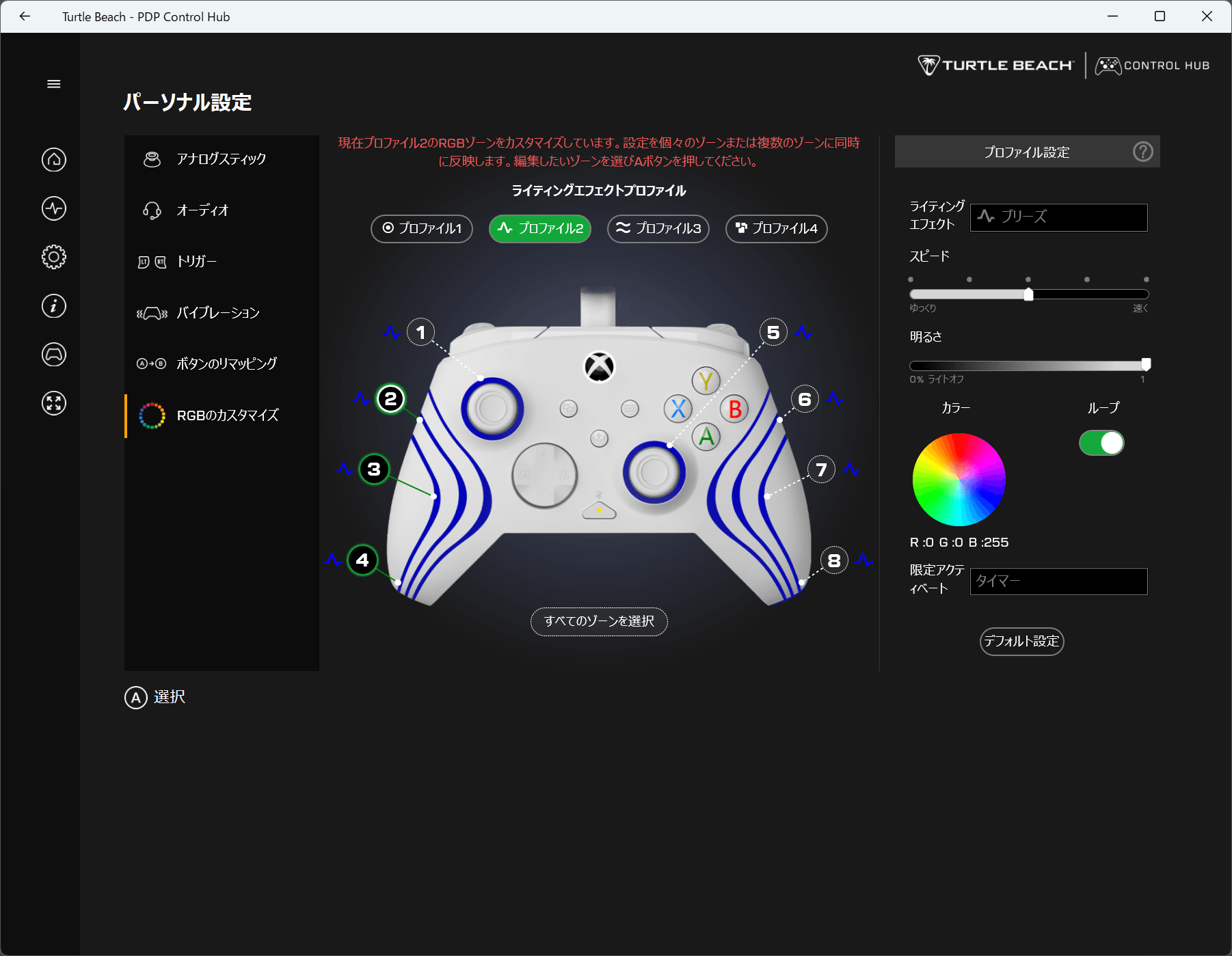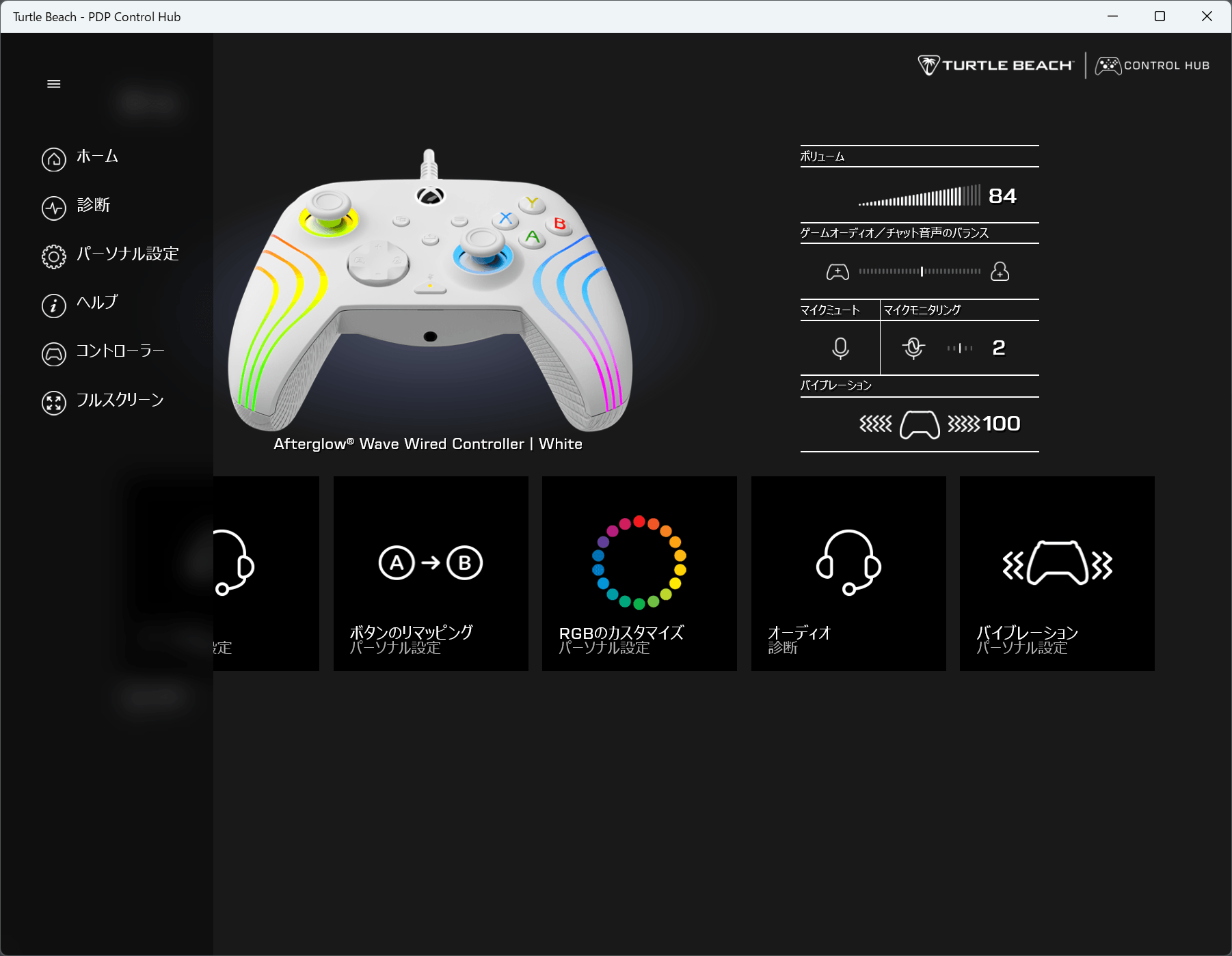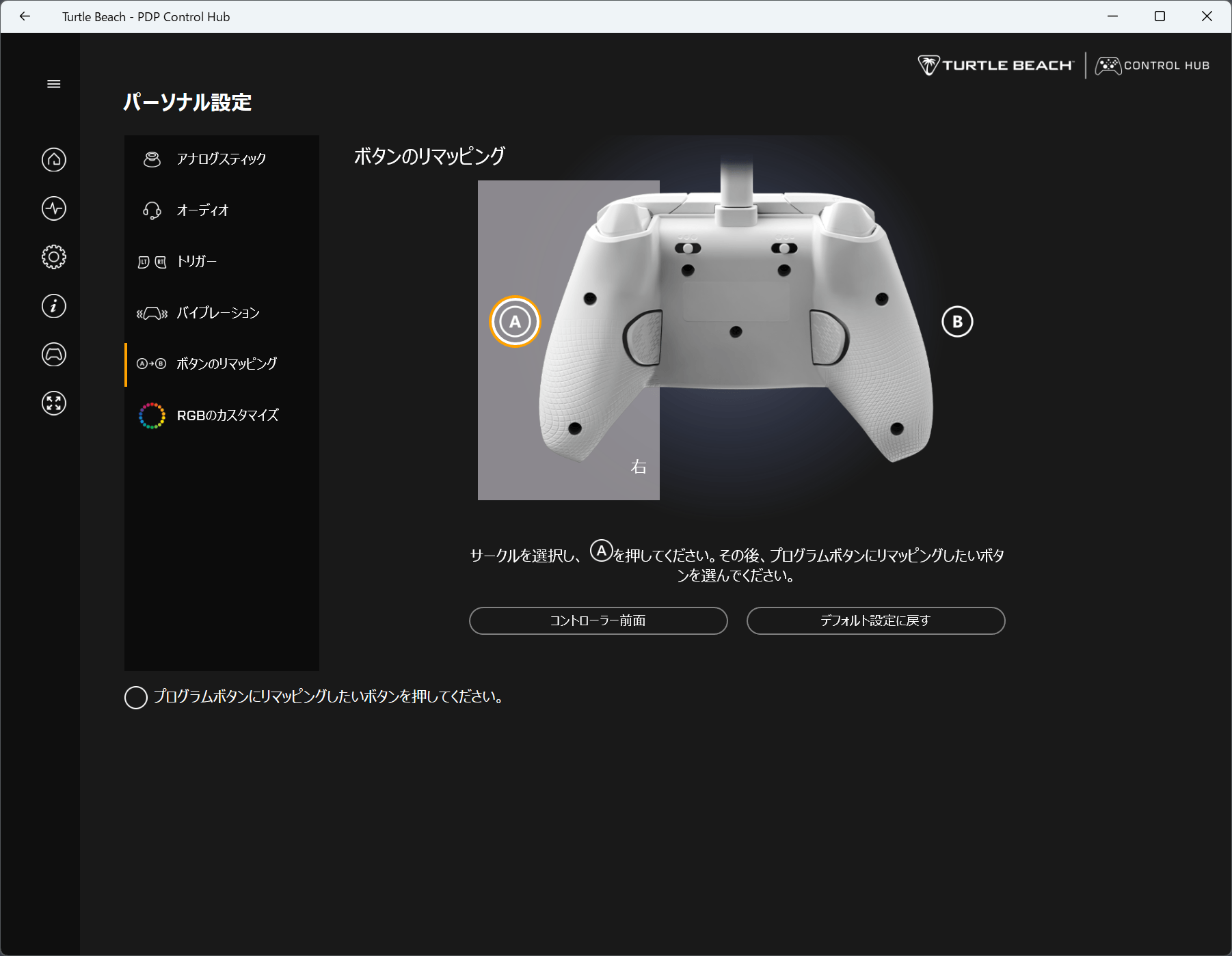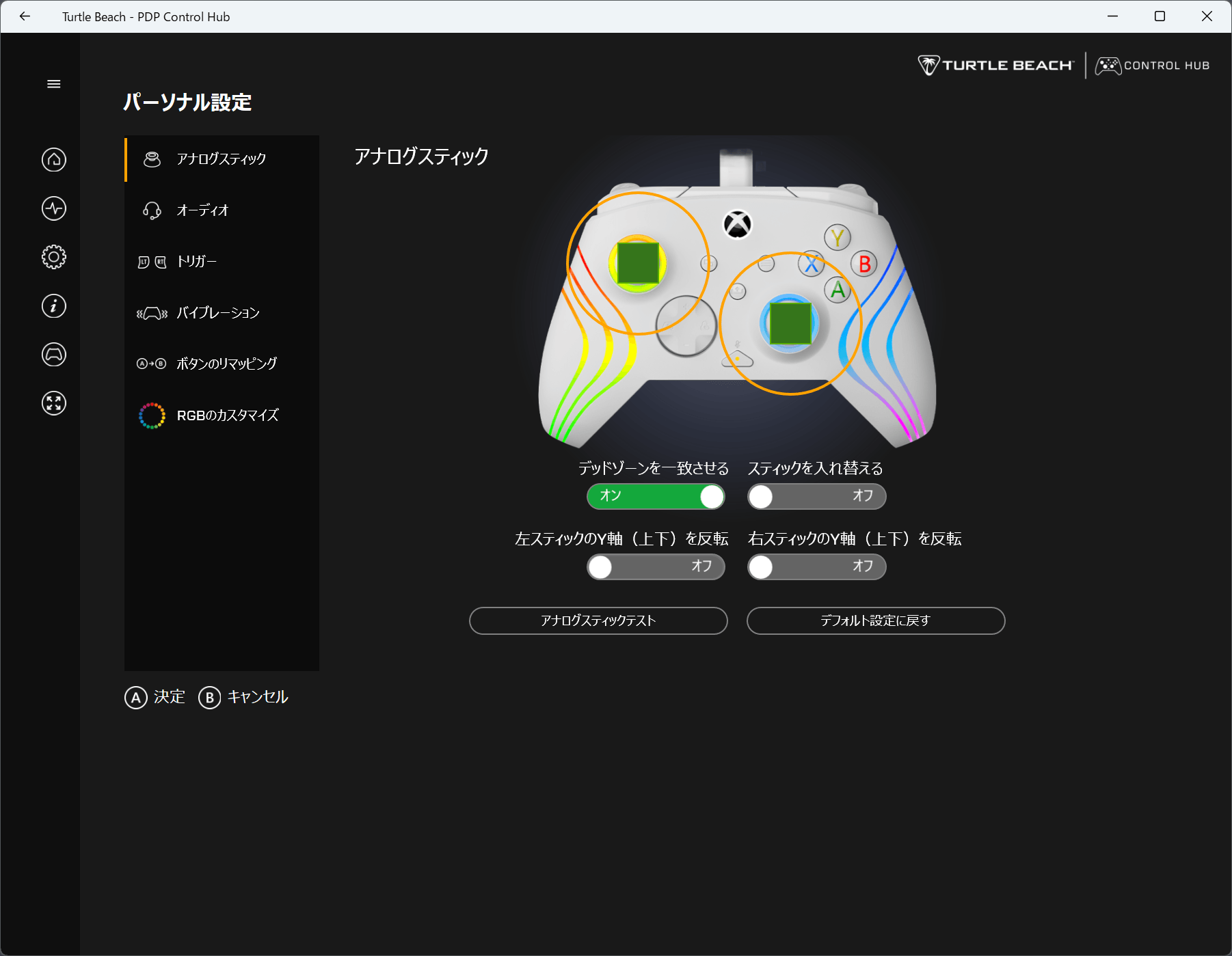 デッドゾーンなど細かい設定は「PDP Control Hub」におまかせ
