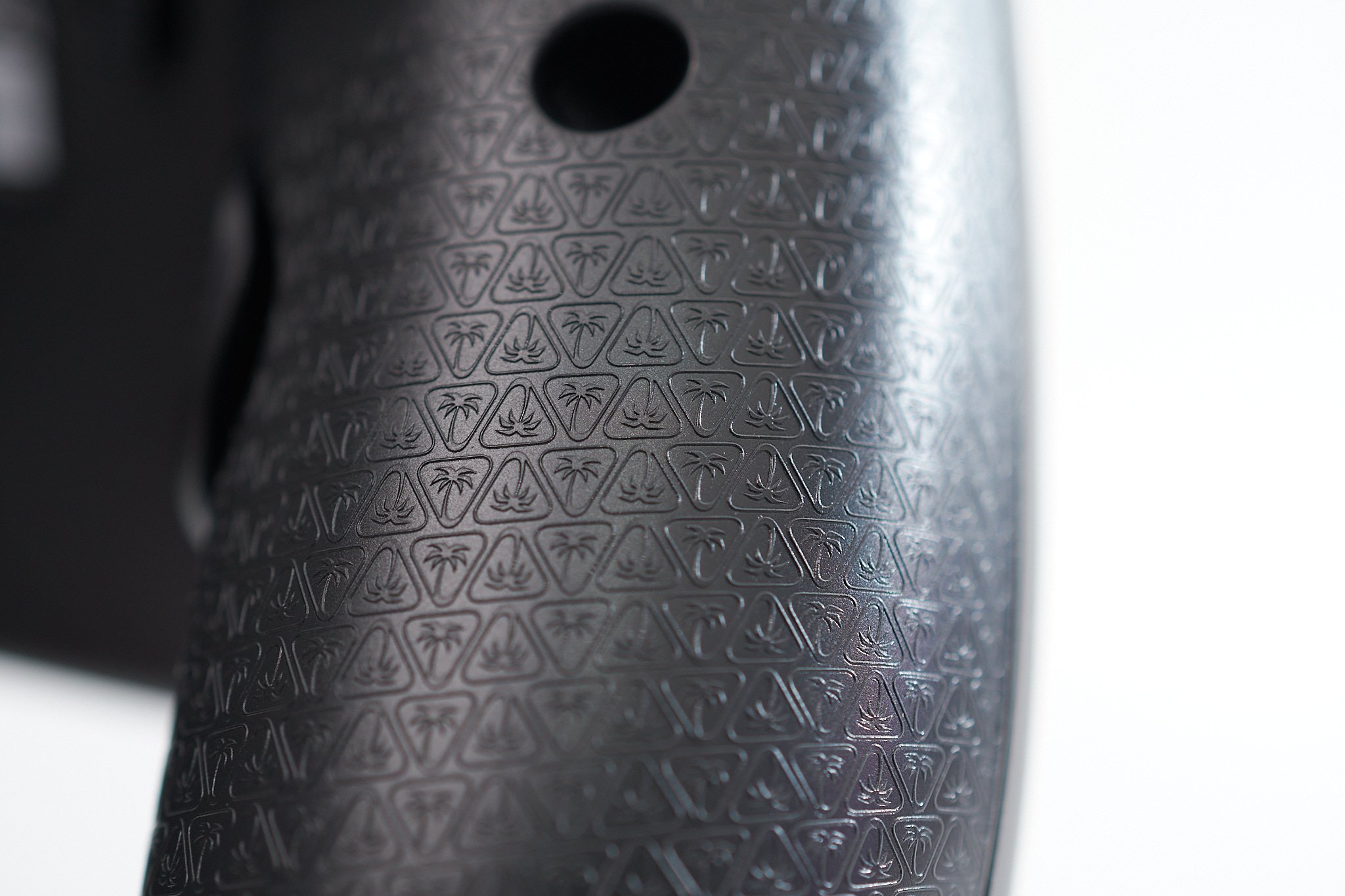 ▲エンボス加工というほどデコボコしているわけではない。さらさらよりの控えめなレーザー刻印だ。ピタッと吸い付くという感じではない