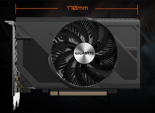 横幅170mmのコンパクトなグラフィックボードでも、強力なパフォーマンスを発揮します。また、小型のPCケースにも取り付け可能で、エアフローも妨げず、ケーブルの取り回しにも優れています。