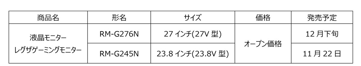 リフレッシュレートは「RM-G276N」が240Hz、「RM-G245N」が180Hzとなっている。