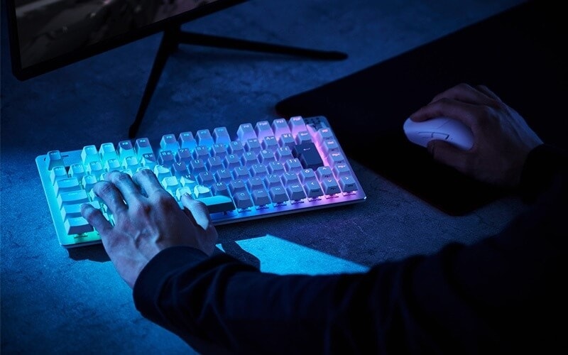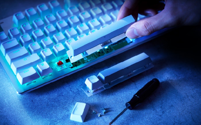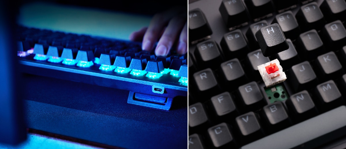ゲームに精通したプロジェクトチームが手がけた、操作性に優れたキーデザインを採用するほか、キー印字には摩耗しにくいキーキャップと視認性に優れたオリジナルフォントを使用。さらに、新開発のゲーミングエンジンにより、応答速度・精度・安定性を向上させています。ホットスワップ方式によるキースイッチ交換やスペースキーのカスタマイズも可能です。また、1,677万色RGBライティングを搭載し、専用ソフトを使ってキー割り当てやライティングのカスタマイズが可能です。今後、ロープロファイルモデルの発売も予定しています。