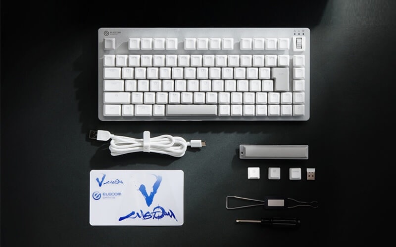 おもな付属品:2.4GHz無線接続用USBレシーバー×1、パラコードケーブル×1(約2m)、交換用キーキャップ×3、キーキャップ&キースイッチリリース×1、ロングスペースバーユニット×1、交換用ドライバー×1