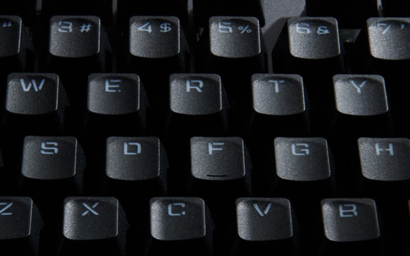 ゲームプレー中の各指のキーストローク角度を研究し尽くし、高速で打ち込んでも指がずれないようキートップをラウンドさせました。Z~Mキーは左手親指での操作に最適化した特殊なアシンメトリー形状を採用しています。