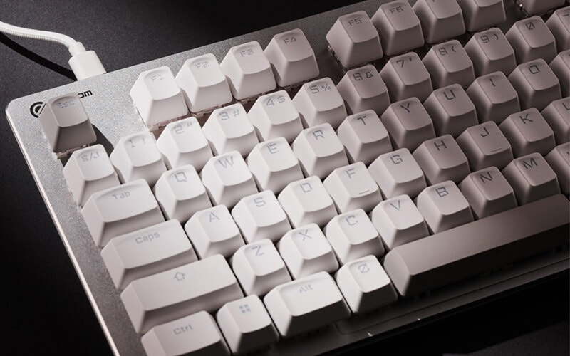 キーの印字は、色の異なるプラスチック材料で文字を成形する“ダブルインジェクションPBTキーキャップ”を採用し、キー印字の塗装が剥がれにくい、圧倒的な耐摩耗性を実現しています。また、視認性に優れたステンシル調のオリジナルフォントを採用しています。