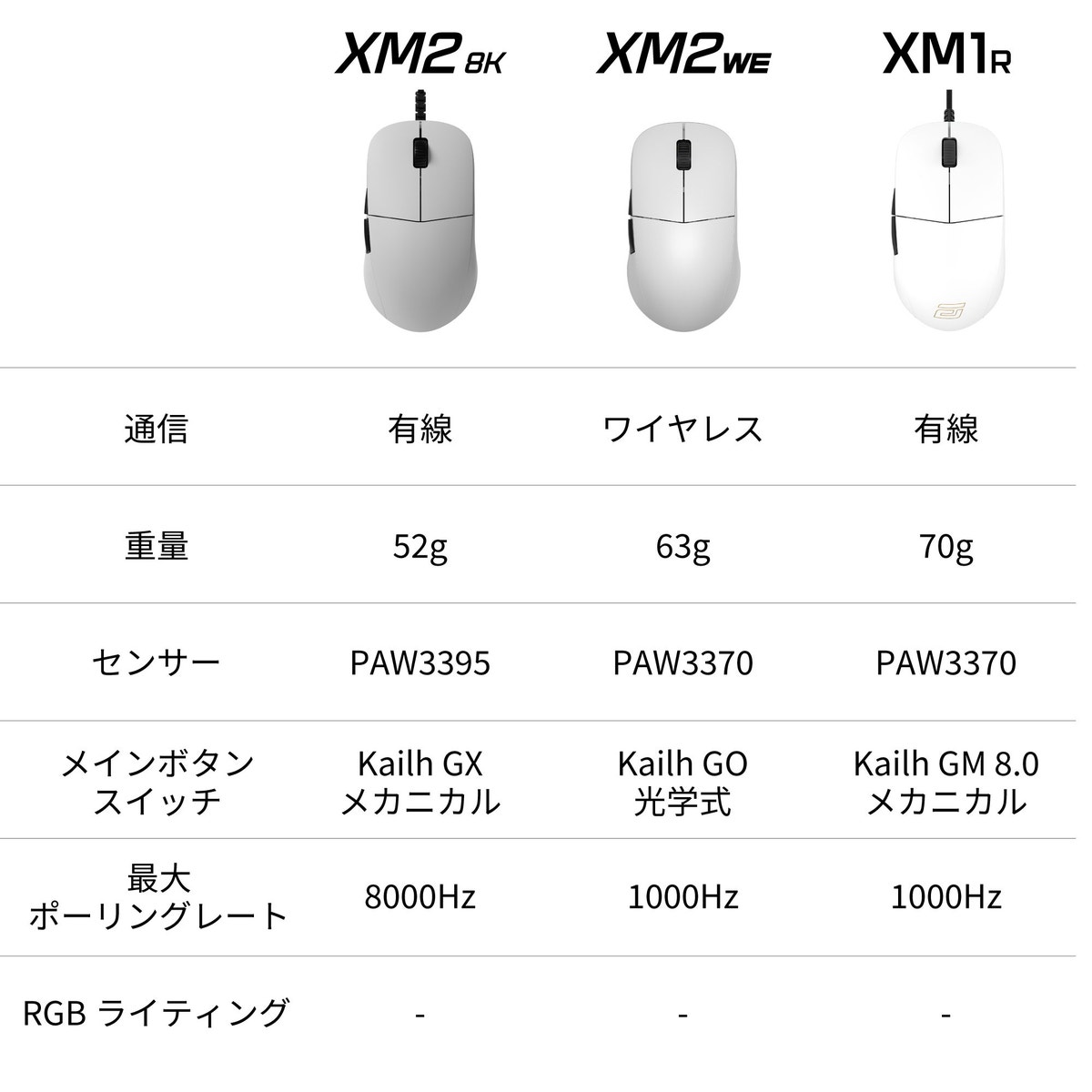 XM2 8Kは、過去の製品と形状は同じながら、最も性能に特化したモデルで、軽量化と世界最速の応答速度を目指したハイエンド機種です。