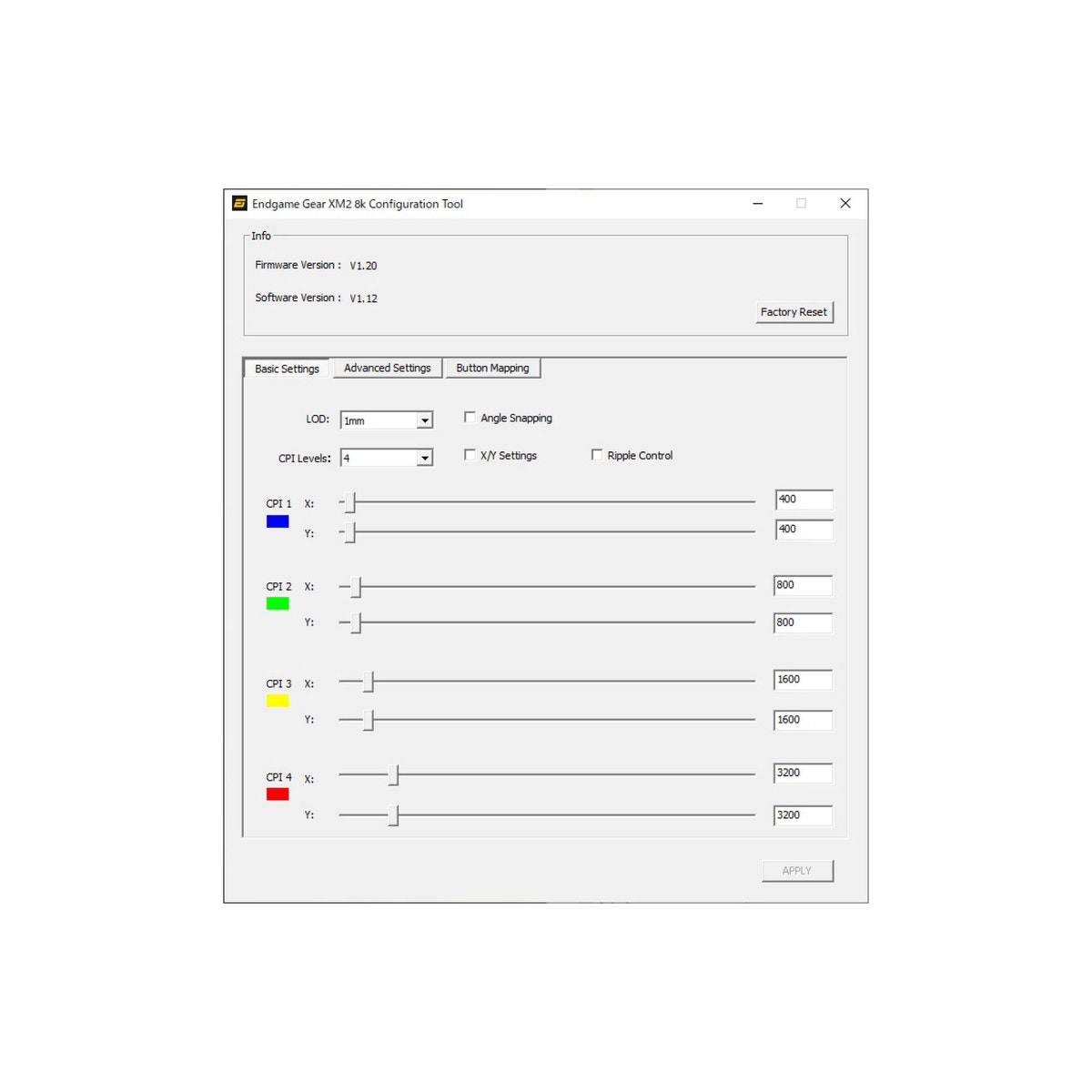 各ボタン設定、デバウンスタイムの調整、ポーリングレートやLOD設定等が行えるソフトウェアを用意。メーカー公式サイトからダウンロードして使用できる。