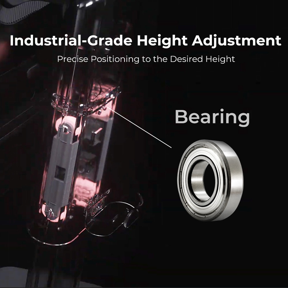 滑らかで柔軟な高さ調整が可能なベアリングを採用筐体にはベアリングを採用し、高さ調整において滑らかな操作感を実現しています。また、ティルト、スウィーベルにも対応しているため、プレースタイルや好みに応じて、柔軟に調整が可能です。