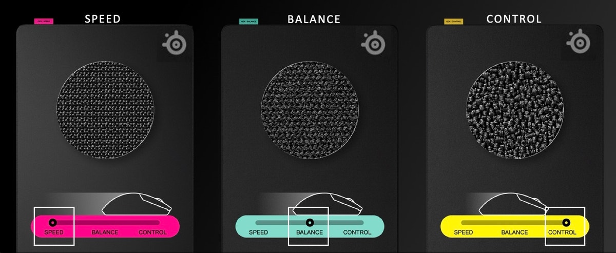 「QcK Performance」シリーズは、SteelSeriesが初めてマウスパッドの精度をカスタマイズし、プレースタイルにあわせて「Speed」「Balance」「Control」の3種類よりLサイズとXLサイズを用意し、自分に最適なマウスパッドを選ぶことができます。
