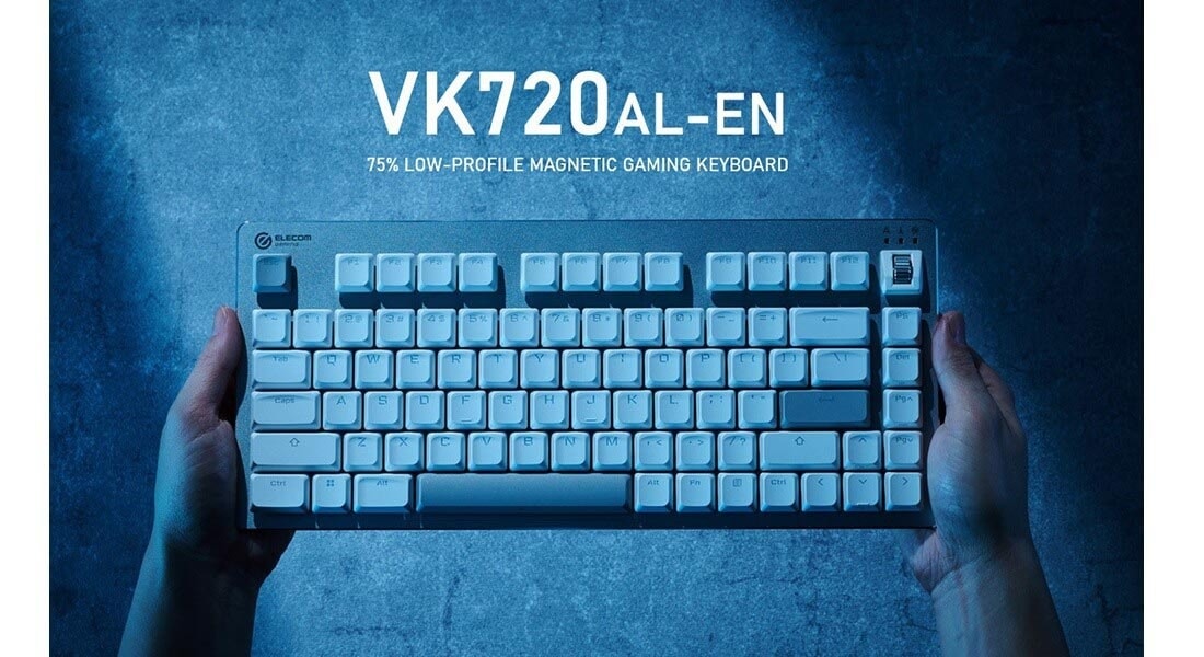 エレコム株式会社(本社:大阪市中央区、取締役社長執行役員:石見 浩一)は、ハイクラス・ゲーミングデバイス「ELECOM GAMING V custom(ブイ カスタム)」シリーズより、「US配列」の磁気スイッチ搭載ロープロファイル75%ゲーミングキーボード“VK720AL-EN”を、3月下旬より新発売いたします。