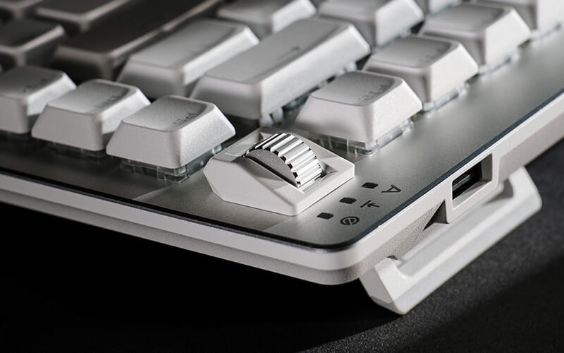 デスク上でマウスの操作スペースを最大限に確保できるコンパクトな75%サイズです。Esc+F1~F12+ダイヤルがあることで音量や画面の明るさ、ゲームモードの調整などが行うことができるため、ゲームプレー時はもちろん通常利用の際も操作性を損ないません。