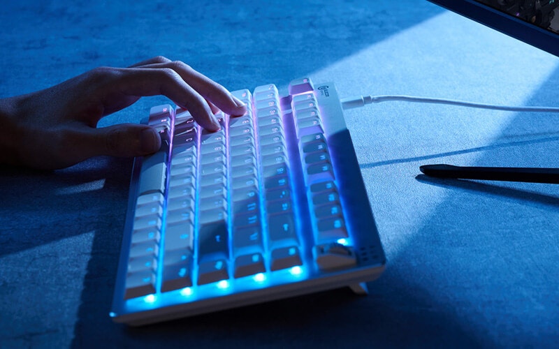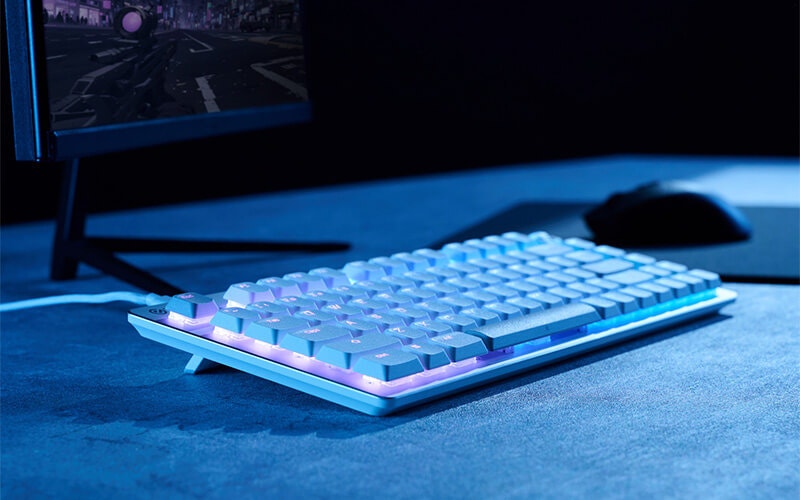 FPSなど高速な指の動きが求められるゲームに最適化された75%ゲーミングキーボードに、「US配列」を採用した磁気スイッチ搭載ロープロファイルモデルが登場します。最短0.1mmの押し込み、押し上げでキー入力のON/OFF操作が可能な磁気スイッチの搭載に加え、ロープロファイル仕様により連打や再入力が速くなり、手首への負担を軽減できます。