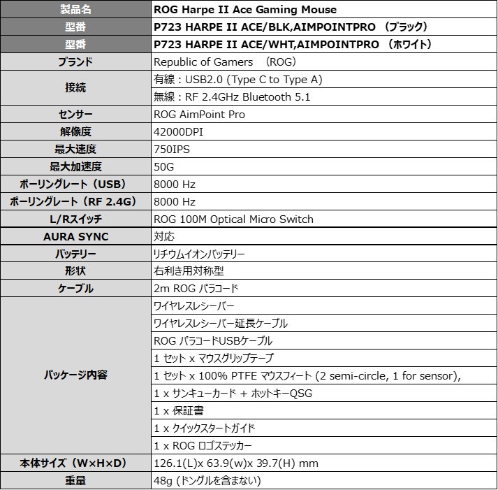 - プロゲーマーとの共同開発したゲーミングマウス「ROG Harpe II Ace Gaming Mouse」を発表
