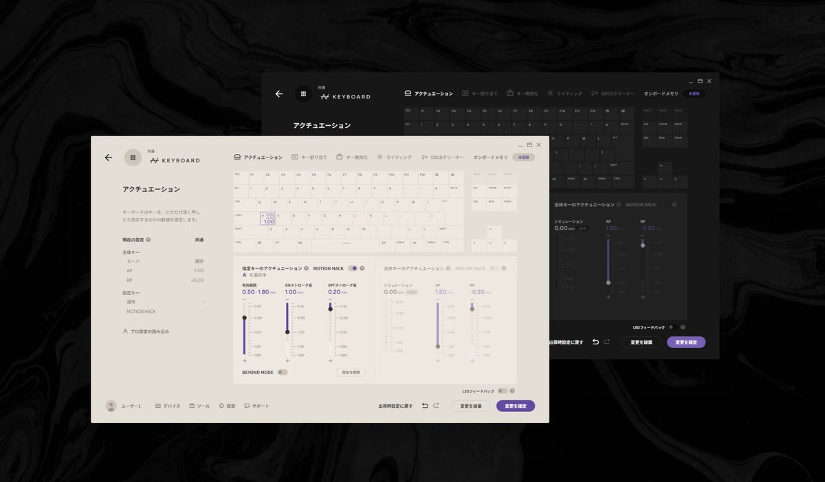 キーリマップ機能をはじめ、ラピッドトリガーを含むAP/RPの設定を0.05mm単位で細かく調整可能。加えて SOCDクリーナー機能やユーザーキャリブレーション機能なども備え、最大限の自由度でプレーヤーのニーズに応えます。