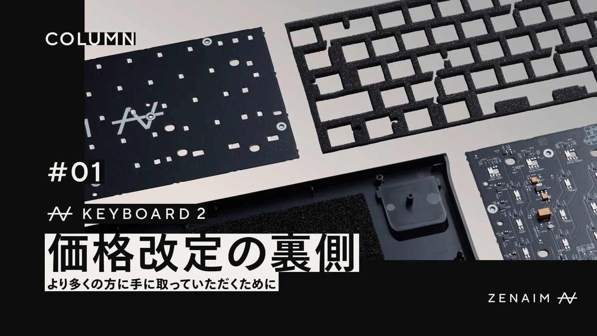 ZENAIM KEYBOARD2 TKLおよびminiモデルの価格改定の背景について、コラムを公開しました。製品としての価値を守りながらも、より多くの方にZENAIM KEYBORADを届けるために、舞台裏で何が行われていたのか。その思いと挑戦に迫ります。