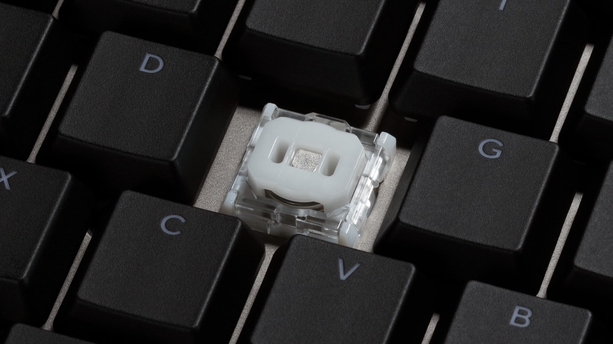トッププロプレーヤーとの数多くの試作を経て完成した ZENAIM KEY SWITCH のストロークはわずか1.9mm。物理的なストロークを短縮し、ガタつきを極限まで排除した構造により、圧倒的な反応速度を実現しました。さらに、無接点磁気センサー方式によるリニアでなめらかな押し心地は、他のキーボードとは一線を画します。