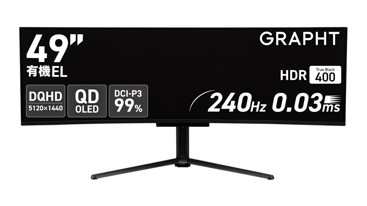 【49インチ+240Hz+QD-OLED】GRAPHTから横になが〜いゲーミングモニターが発売中