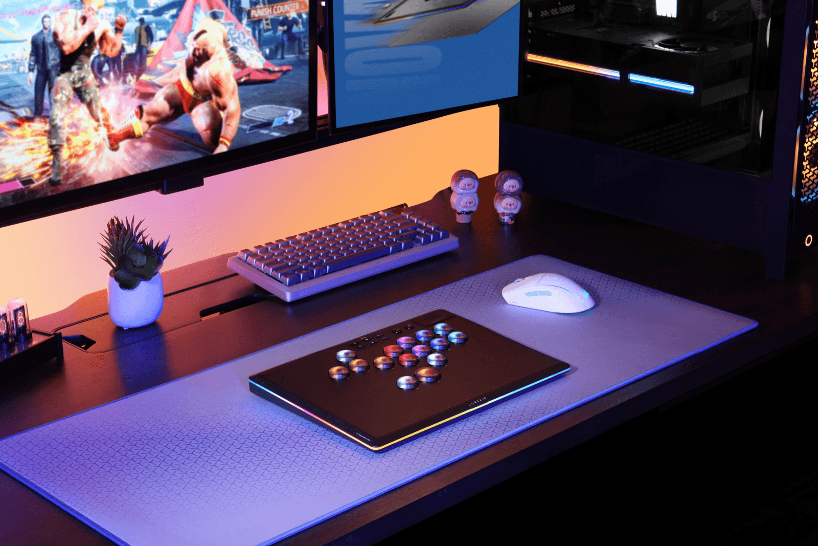 CORSAIR初となるレバーレスコントローラー「NOVABLADE PRO ワイヤレス」は、格闘ゲームの競技シーンにおいて実際に勝利を収めたプロプレーヤーの意見やフィードバックを基に開発されたアーケードコントローラーです。CORSAIRのゲーミングキーボードで培った独自のキースイッチやテクノロジーを盛り込んだ「NOVABLADE PRO ワイヤレス」は、家庭でのコンソールゲームだけでなくプロレベルの試合でもパフォーマンスを発揮します。