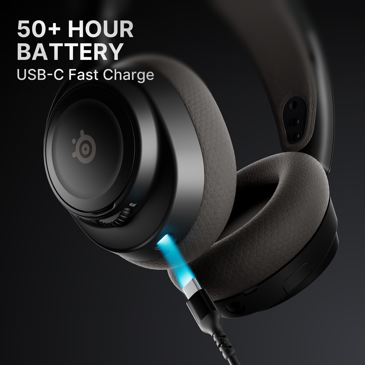 第二世代からは、ゲームや映画、音楽などの音設定を最適化したオーディオEQプリセットが300種類ほど搭載されている専用モバイルアプリ「SteelSeries Arctis Companion」との連携ができるようになりました。さらに第一世代と比較してバッテリー駆動時間が約40%向上し最長50時間の連続使用が可能、USB-C急速充電対応で15分充電で6時間使用が可能です。