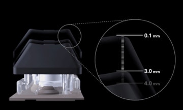 キースイッチの On から Off、Off から On の作動点を 0.1mm 単位の移動量で設定できます。キーストロークにおけるオン位置・オフ位置(リリースポイント)を指の動きに合わせてリアルタイムに可変させることで、ゲームへの高速入力を実現します。