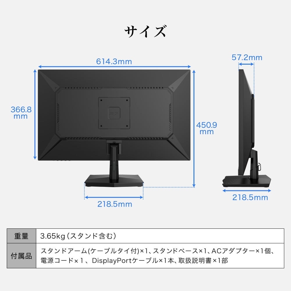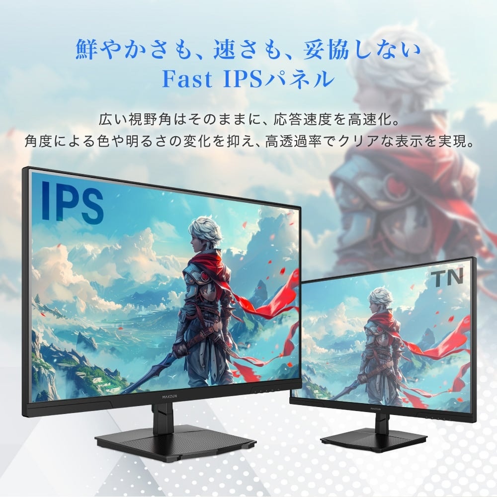 - Fast IPSパネルと応答速度1msで鮮明かつブレない映像を実現
