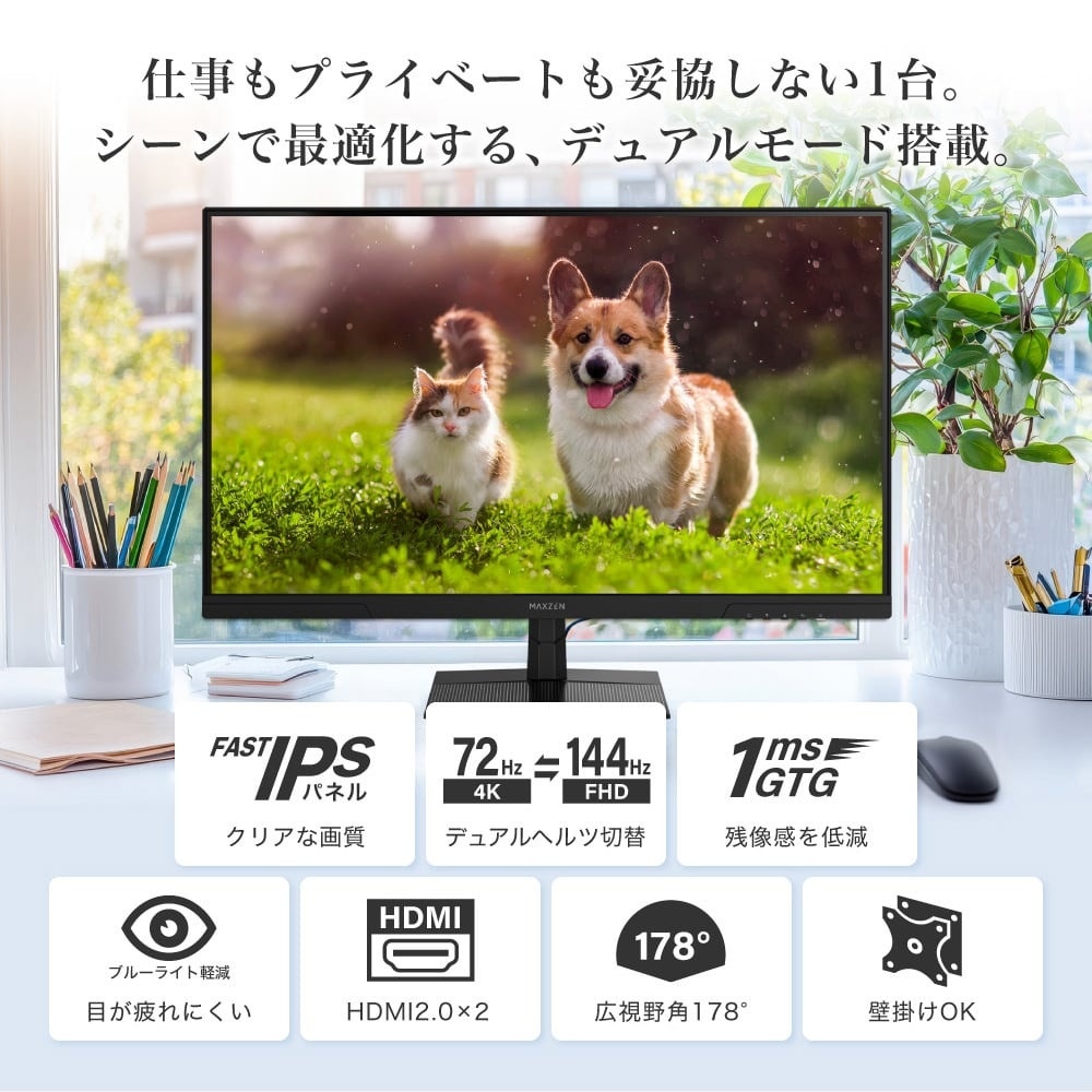 【4K+72Hz⇆FHD+144Hz】MAXZEN、2.4万円台で解像度切替可能な27型モニター発売――仕事もゲームも1台で完結