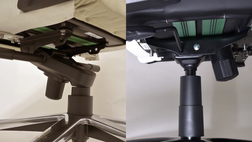 左が「Faura」、右がゲーミングシリーズの「Eclair」のシリンダー部分。座面チルト機構がある「Faura」は傾く隙間がある