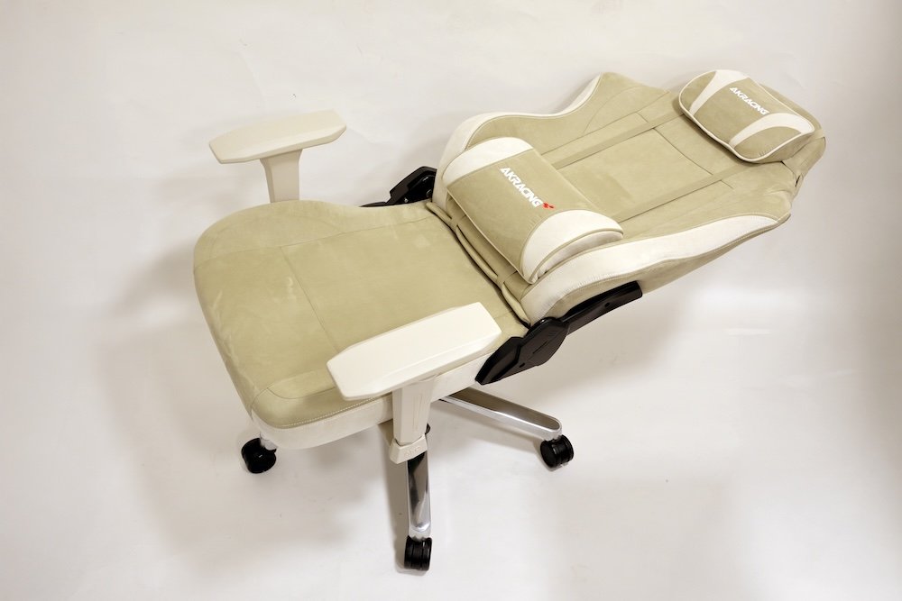 リモートワークや顔出し動画配信などを行う際に、オフィスチェアやリビングチェアの雰囲気を醸し出しつつ、中身はAKRacingというこだわりを満足させてくれる1脚に仕上がっている。