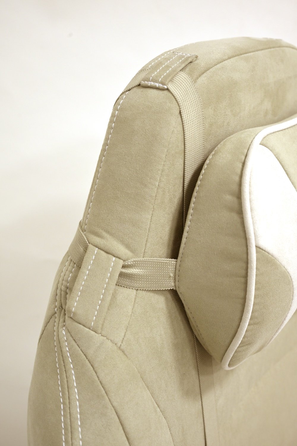 デザイン面での大きな変更点は、ヘッドレストとランバーサポートの固定方法の違いだ。
