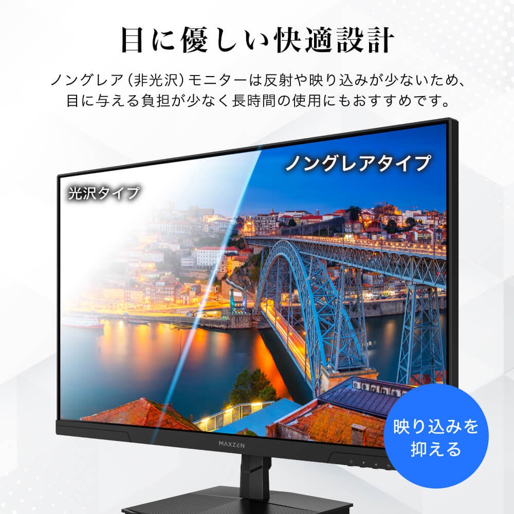- 目に優しいノングレアとブルーライト軽減仕様