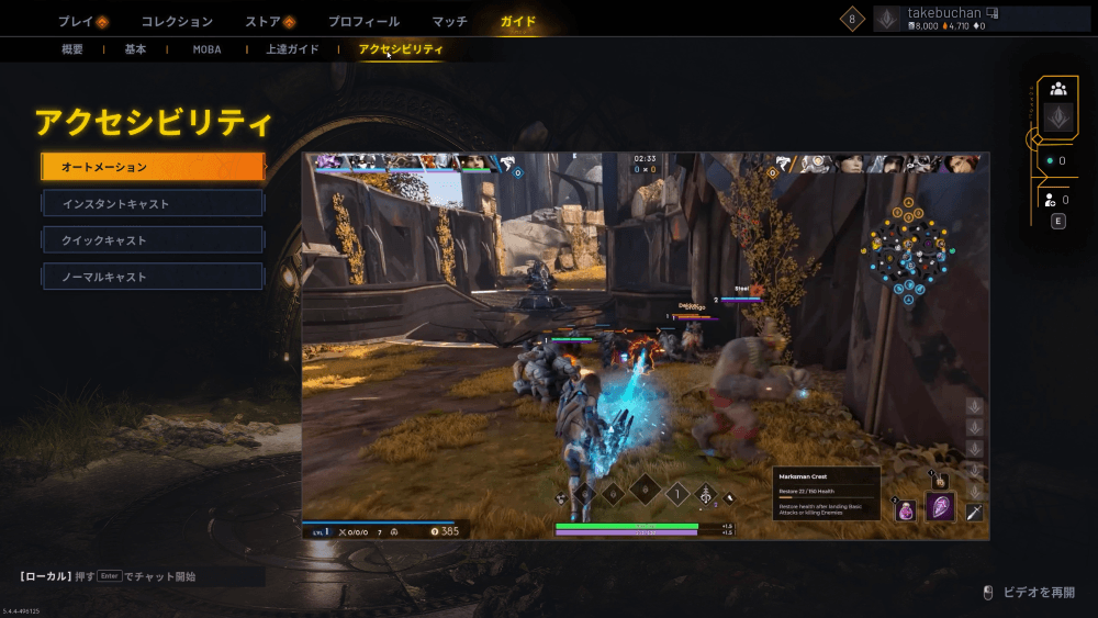 唯一気になったのは、ゲームクライアントでシステムの説明をしている「ガイド」ページが、項目名は日本語になっているものの、肝心の説明動画はすべて英語なこと。ここ以外のゲーム内ショップのアイテムやスキルの説明などはすべて日本語化済みなので、ぜひ初めてプレーするユーザーに向けてここも日本語化を要望したい。