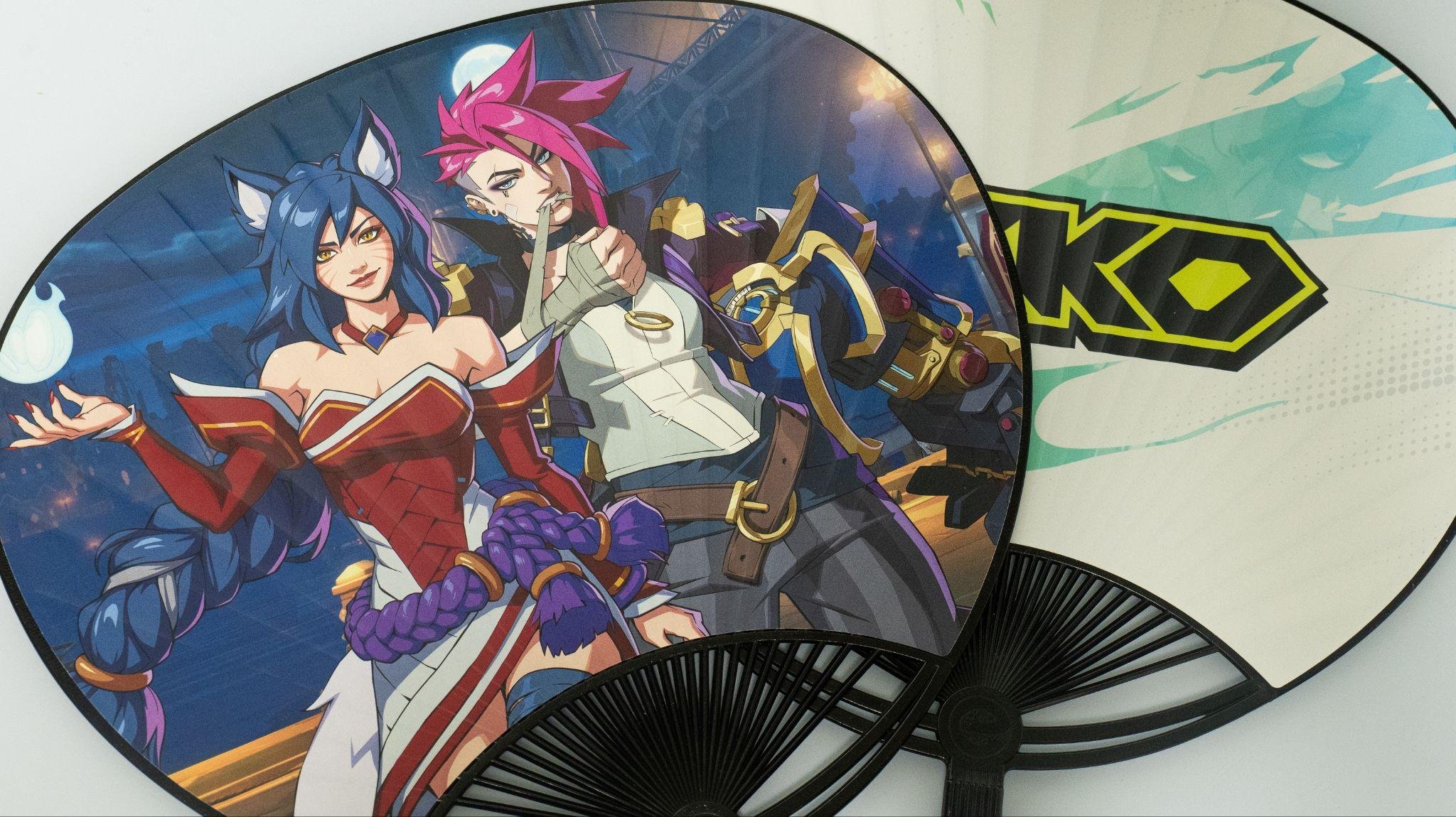 ▲来場者には、アーリとヴァイが描かれた特製のうちわがプレゼント! 前後で異なる対照的なデザインがかっこいい