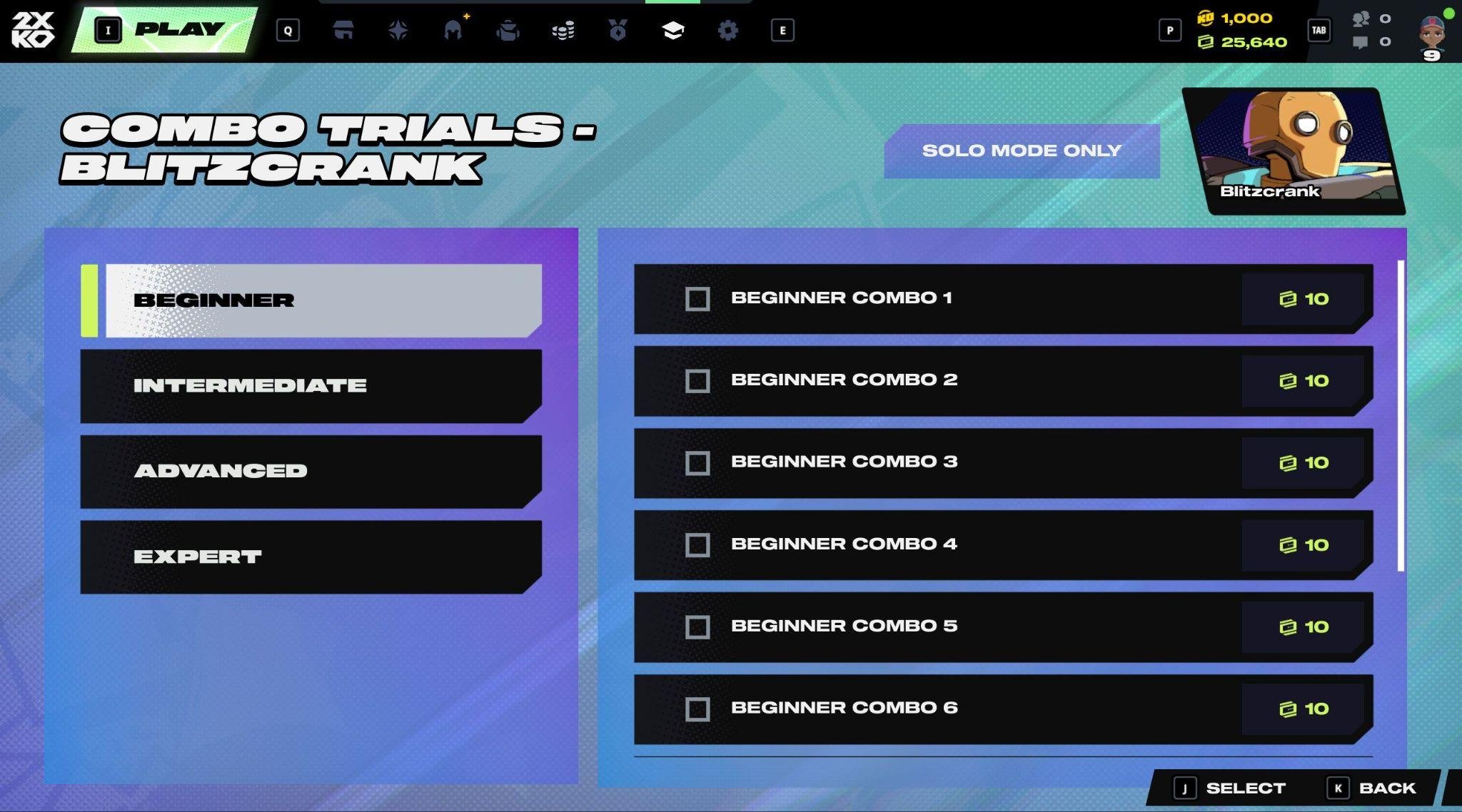 ▲アーリーアクセスから追加される「コンボトライアル」。難易度別にさまざまなコンボ練習ができ、チャンピオンの使い方を実践形式で学ぶことができる(https://2xko.riotgames.com/ja-jp/news/announcements/2xko-early-access-starts-october-7/)