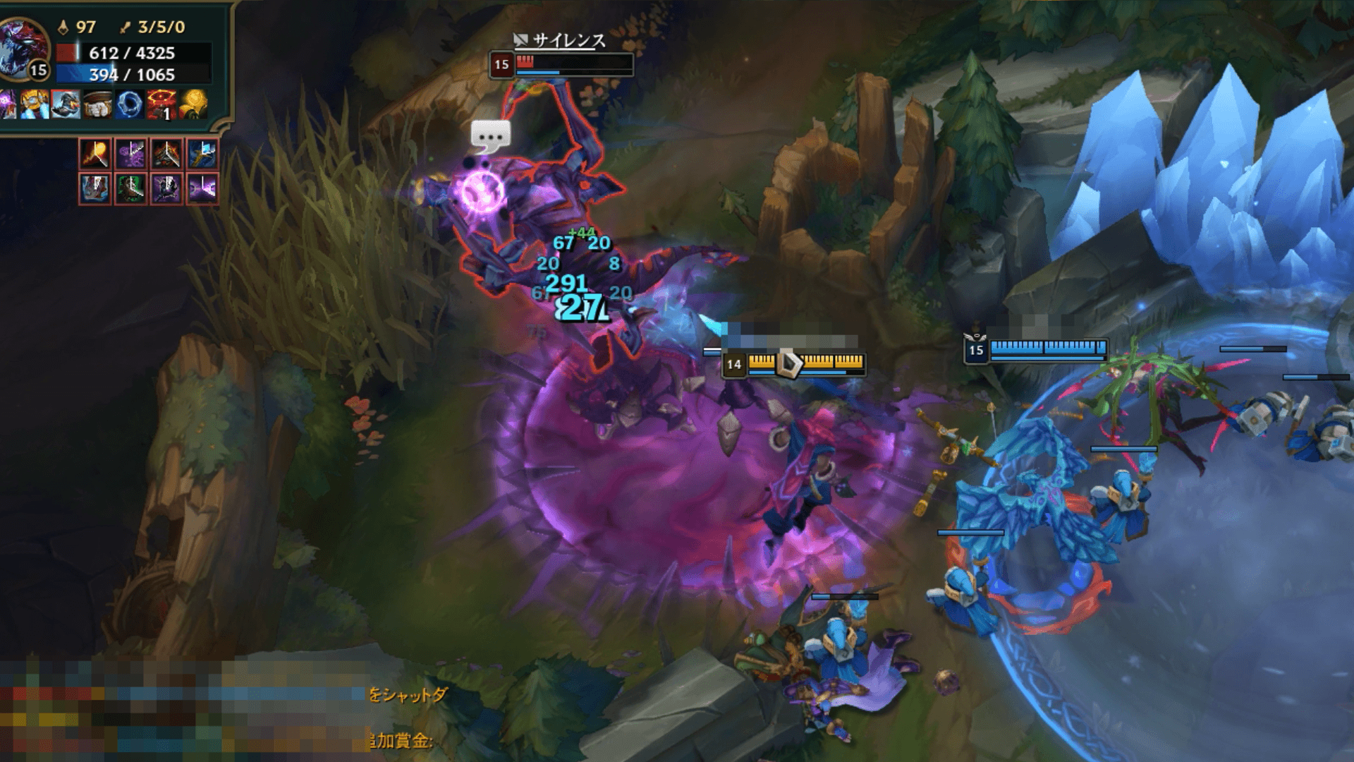 ▲虫を召喚して戦わせつつ、自身も遠隔攻撃ができる「マルザハール」。MIDレーンをずっとプッシュし続けることができるため、初心者でもわりと使いやすいチャンピオンだ。対抗策を持ち合わせていないと、安全な場所からボコボコにされることも