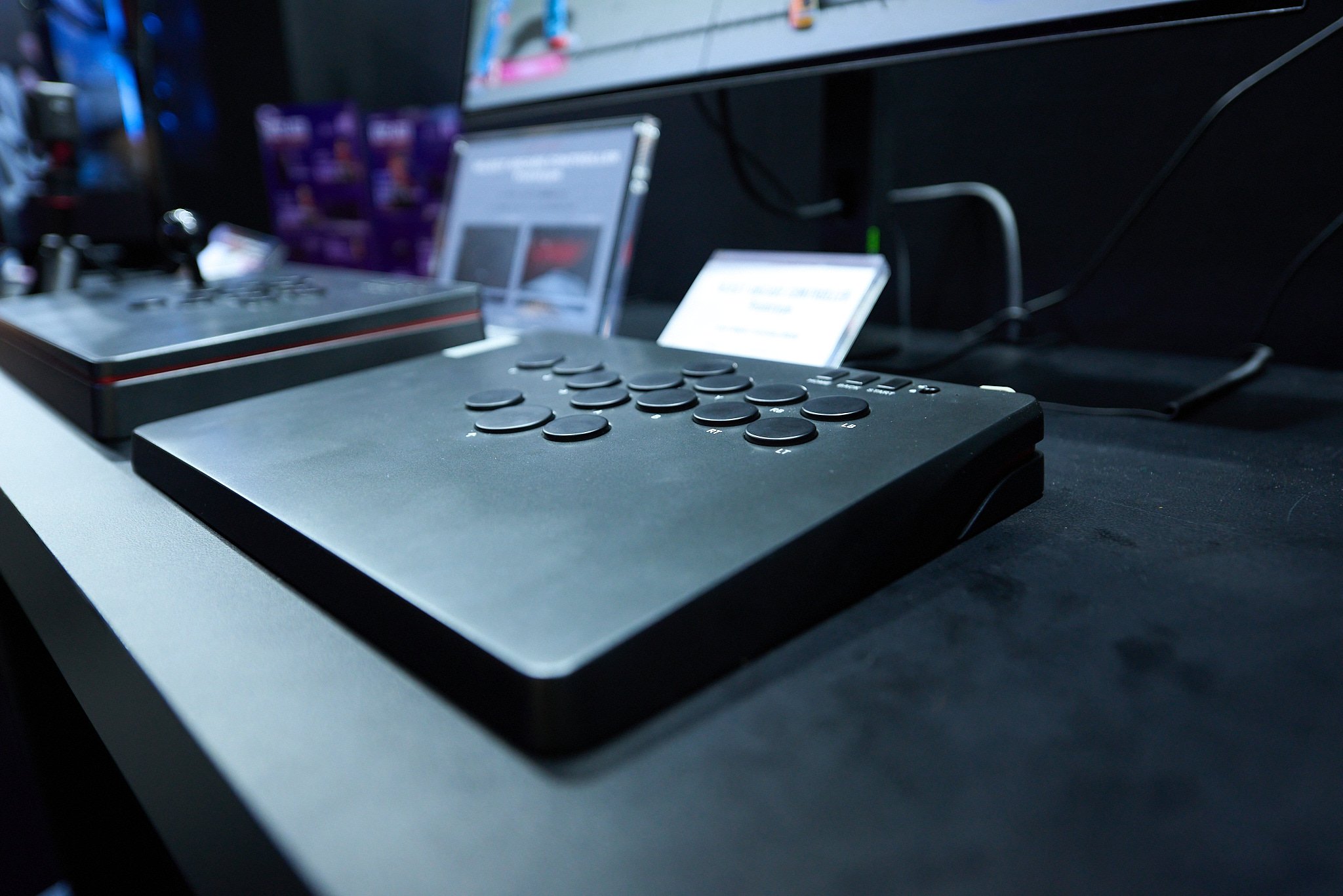 ▲実際に「東京ゲームショウ 2025」ではアケコンとレバーレスの試作品が展示されていた。確かにボタンの押し心地は小気味よく、快適にプレーできた