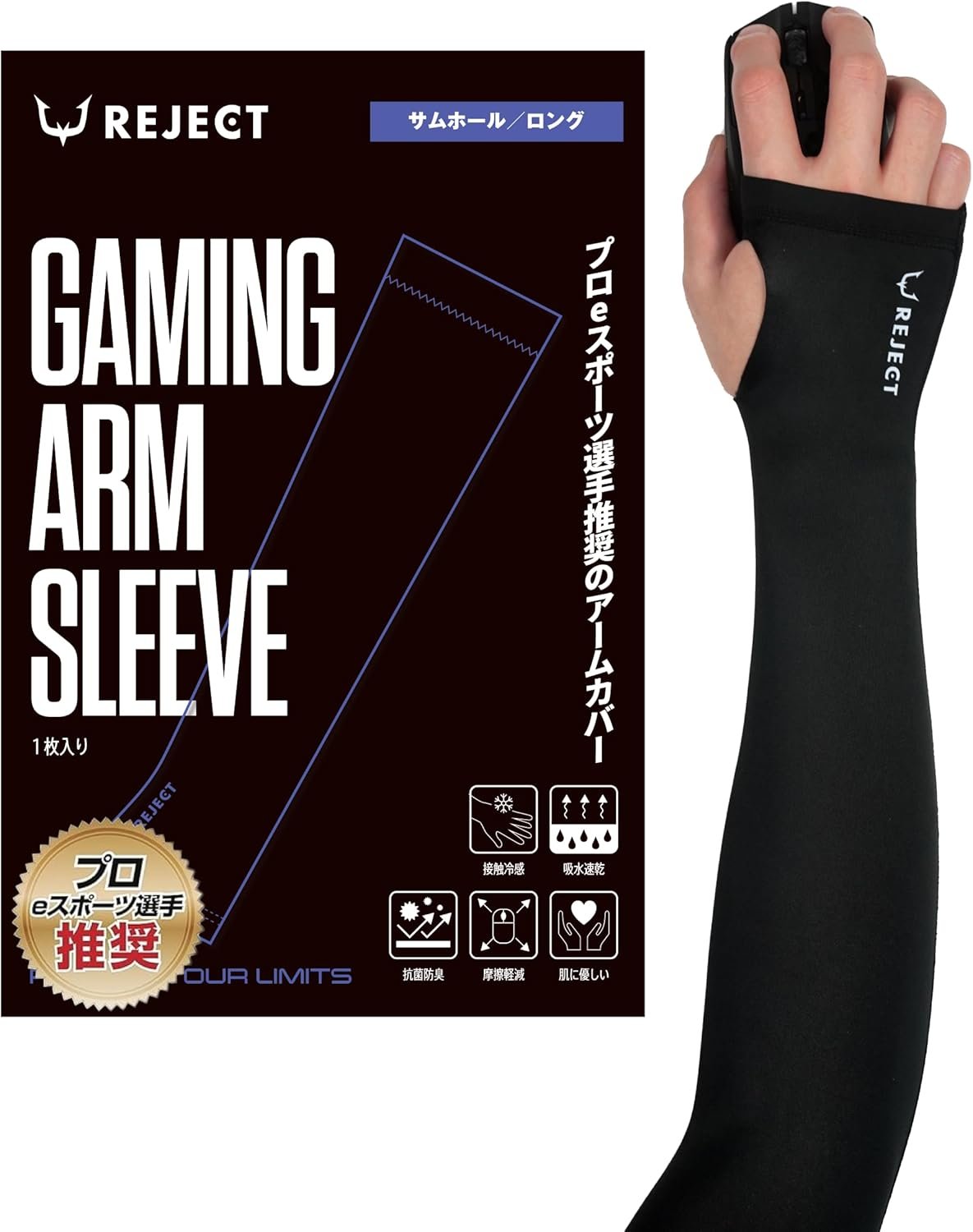 ▲親指を通す部分の穴はあえて縫製をしないというプロの意見を取り入れた「REJECT Armsleeve」。通気性や着け心地など利用者からの評価も高い