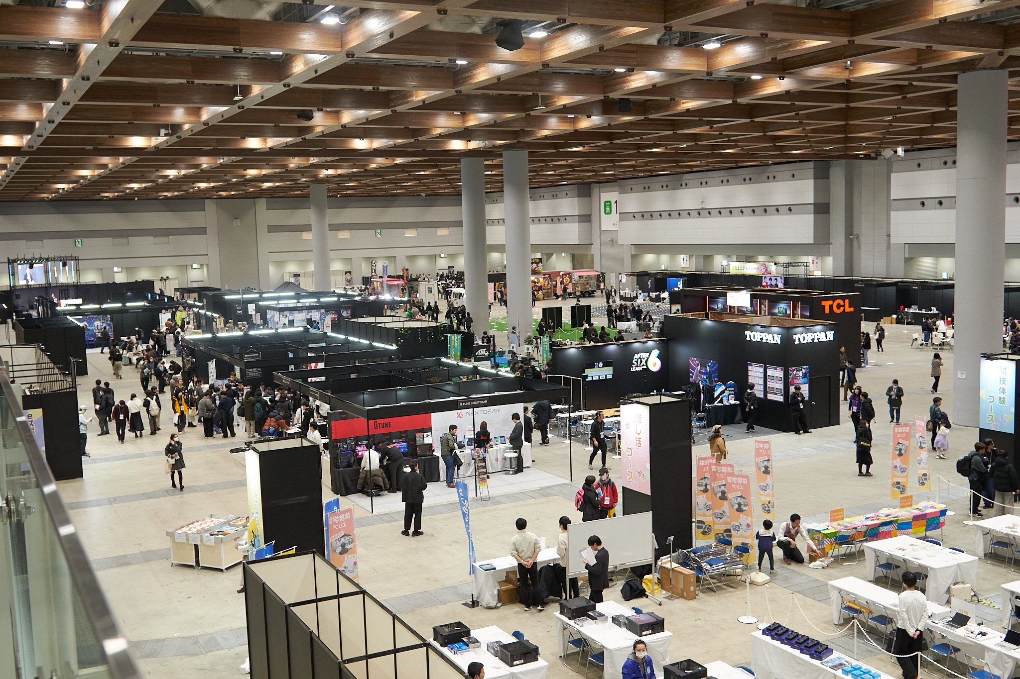 ▲企業ブースエリアでは、さまざまな企業がブースを出展していた。企業や学校間での横のつながりに貢献しているようにも感じ取れる