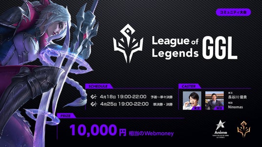 株式会社RATELは、『リーグ・オブ・レジェンド』のコミュニティeスポーツ大会「League of Legends GGL」を4月18日(木)、25日(木)にオンラインで開催する。配信・運営はRATELが行う。
