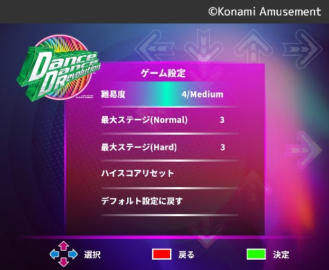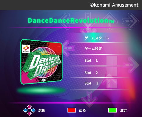 ゲームソフトは「DanceDanceRevolution」「DanceDanceRevolution 2ndMIX」「DanceDanceRevolution 3ndMIX」の3タイトルを収録、専用のゲームランチャーから選択し遊ぶことができます。