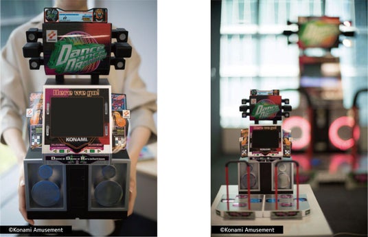 本商品は1998年ゲームセンターに突如として現れ、世界中でヒットして社会現象となった音楽ゲーム「DanceDanceRevolution」を過去のさまざまなレトロゲームミニ筐体の製造経験を生かした当社の小型化技術を用いて実筐体の約5分の1サイズにリメイクした製品です。