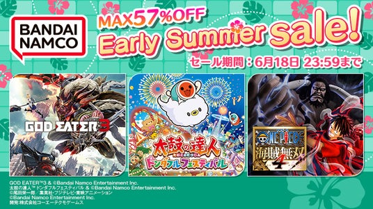 【最大78%OFF!】『太鼓の達人 ドンダフルフェスティバル』などバンナム人気タイトルがお得に買える「アーリーサマーセール」開催中!