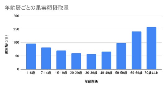 平成17年に厚生労働省と農林水産省により決定された「食事バランスガイド」では、1日あたりおおよそ200gの果物摂取が推奨されています 。しかし、厚生労働省の「平成28年国民健康・栄養調査」(※表2)によれば、日本人の1日当たり平均果物摂取量は98.9gにとどまっており、特に20代~40代では50~60g程度、7~19歳の子ども世代も70~80gと若い世代ほど摂取頻度が低い状況です 。国内外での研究により、果物は生活習慣病に対して高い予防効果があると明らかになっていますが、その平均的な摂取量は依然として低い水準にとどまっています。本イベントは果物のキャラクターが登場する「スイカゲーム」や食育クイズラリーなどで果物の栄養素を学ぶきっかけを提供します。