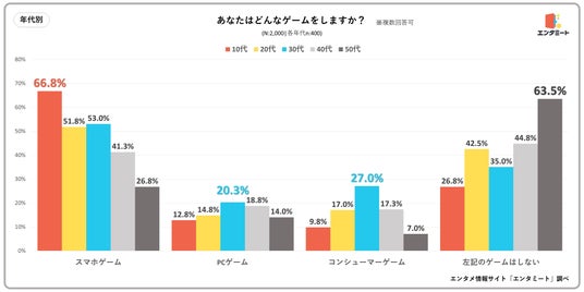 【調査】50%近くがスマホのゲームをプレーしている——全国の10代~50代の男女を対象にゲームに関する調査を実施